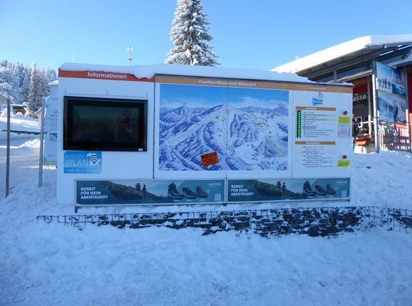 Talrijke infopunten en informatieborden in het skigebied maken de oriëntatie gemakkelijker. Het informatiebord bij de centrale kassa biedt bovendien gedetailleerde bedrijfsinformatie.