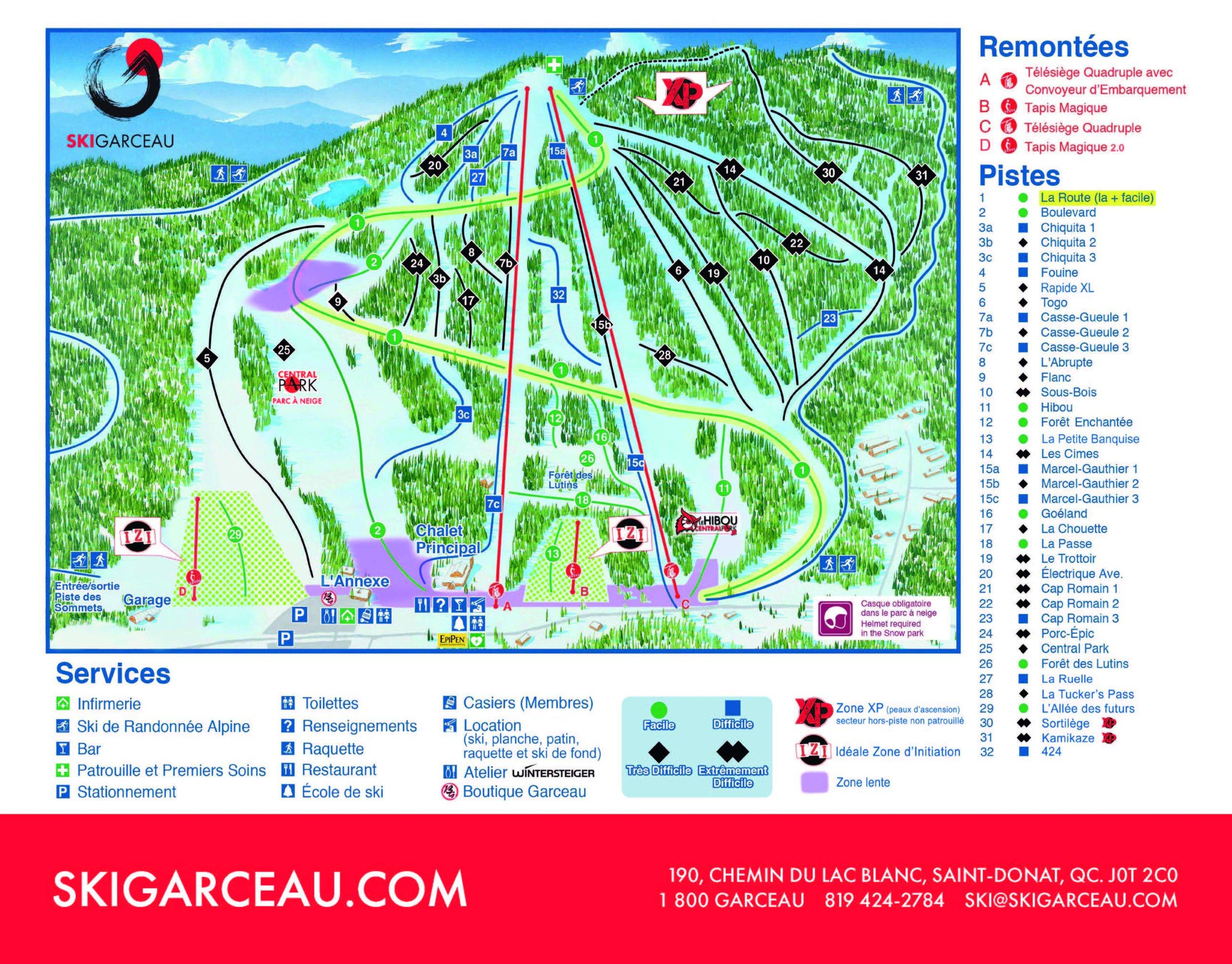 Pistekaart van het skigebied Garceau – Saint-Donat