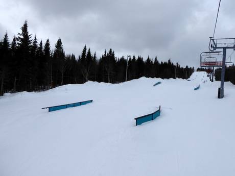 Het skigebied Mont-Sainte-Anne biedt een groot snowpark boven op de berg en een beginnerspark bij het dalstation.