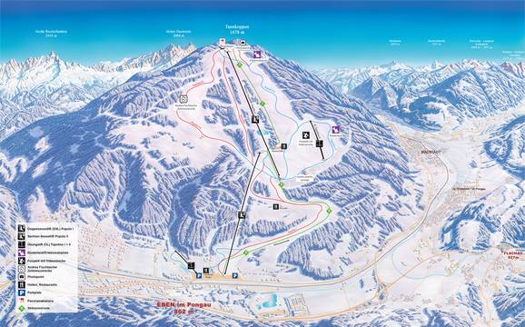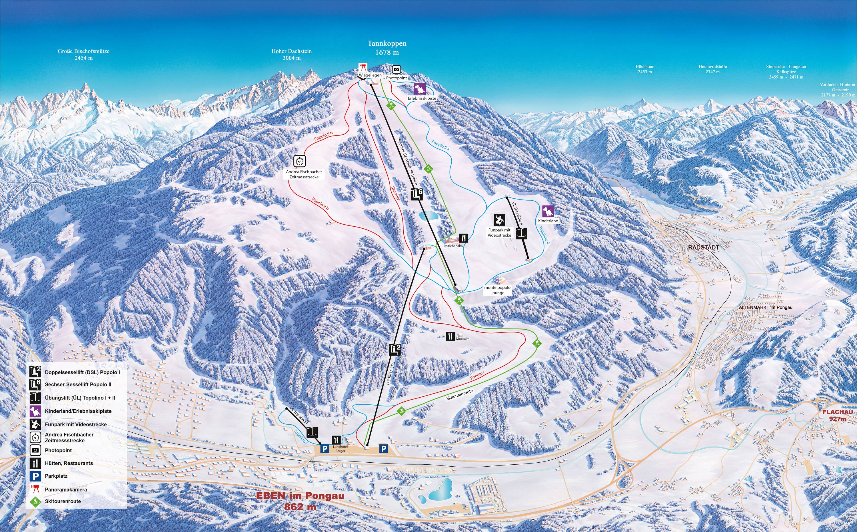 Oriëntatie (pistekaart, informatieborden, bewegwijzering piste) en veiligheid in het skigebied Monte Popolo – Eben im Pongau