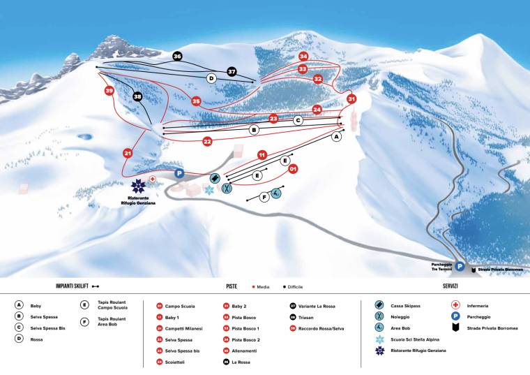 Stresa (21 km), Mottarone (0,1 km) Plaatsen bij het skigebied