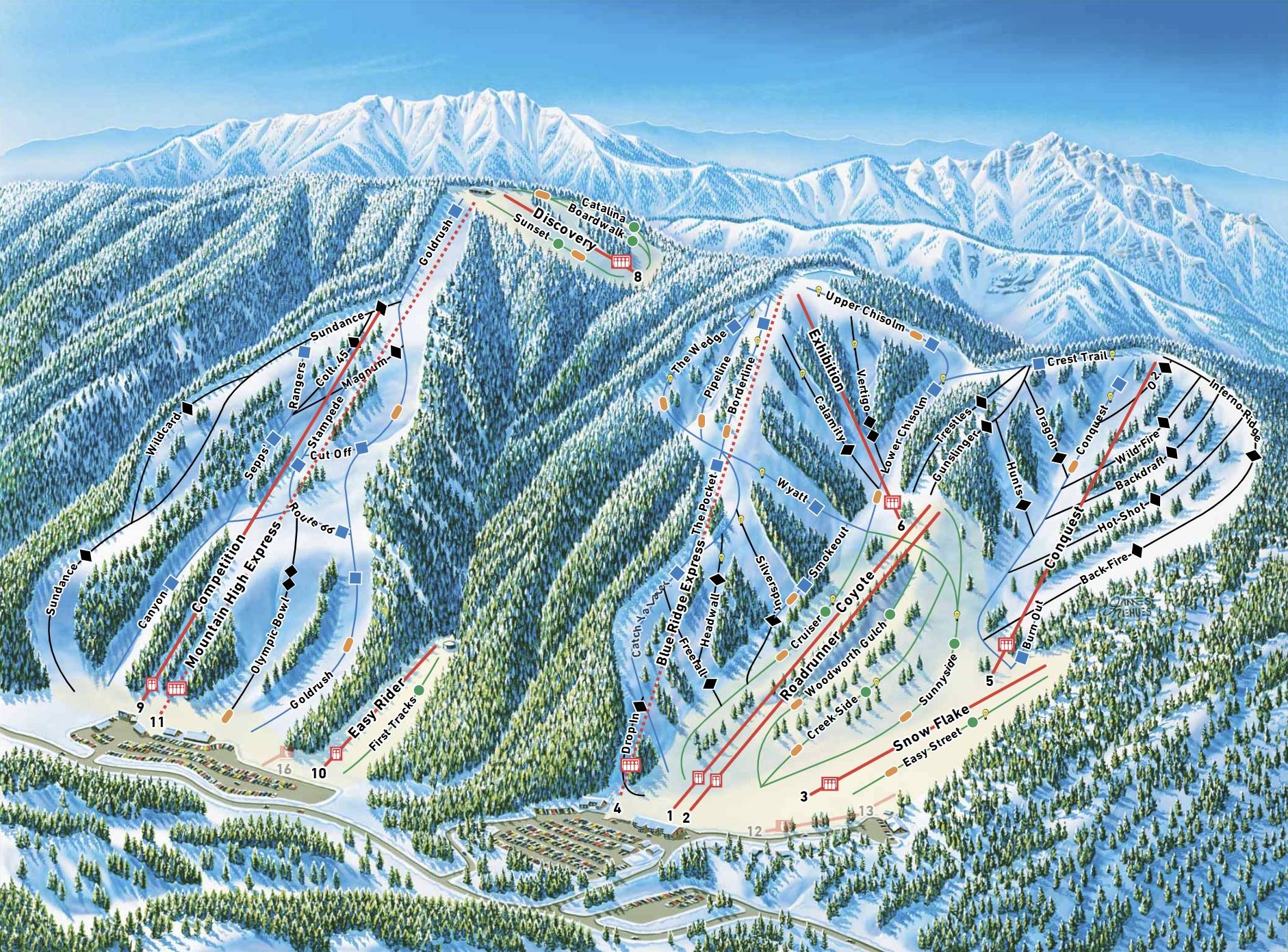 Pistekaart Mountain High East & West Resort seizoen 2024/2025