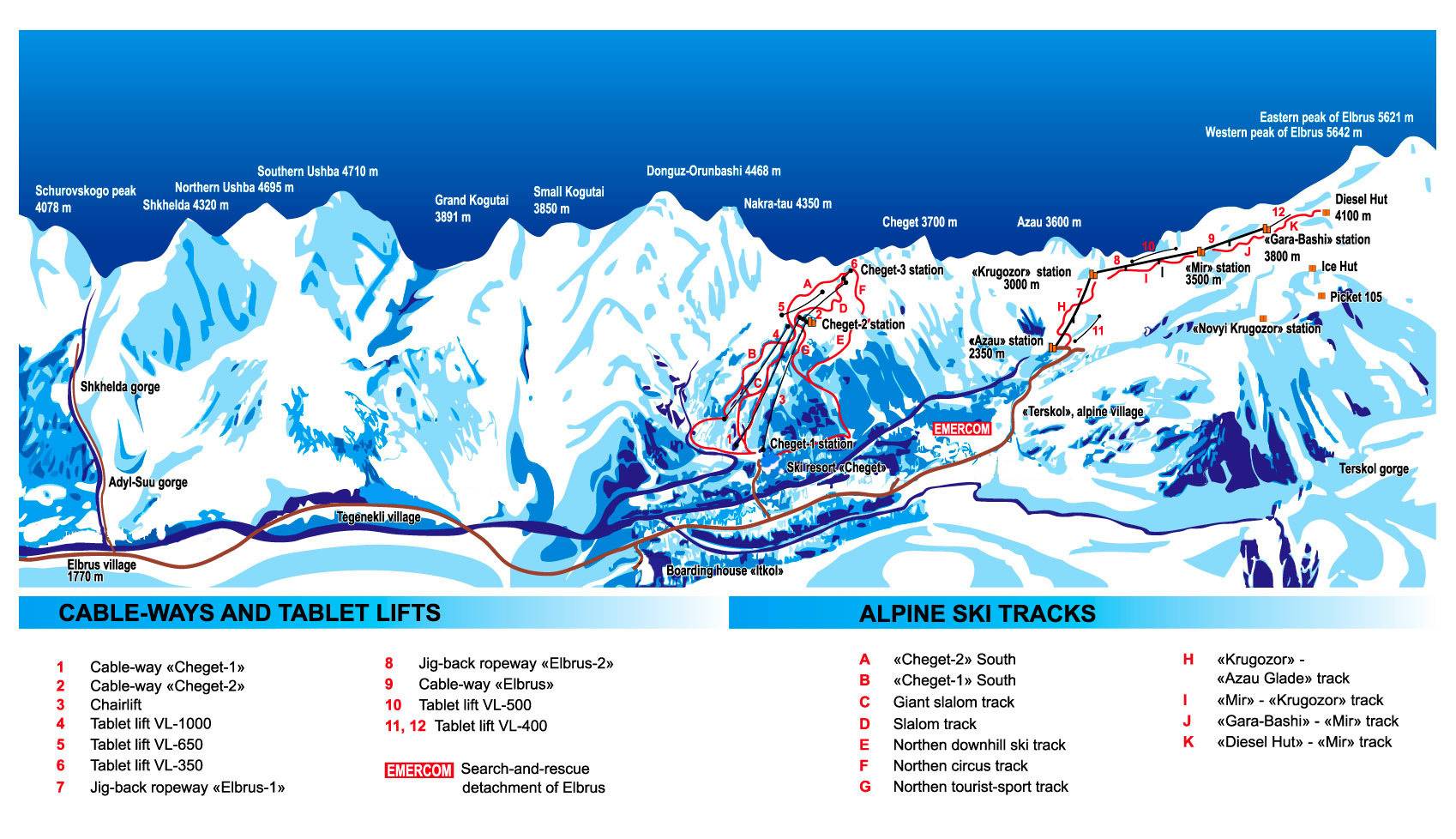 Pistekaart Mt. Cheget seizoen 2024/2025