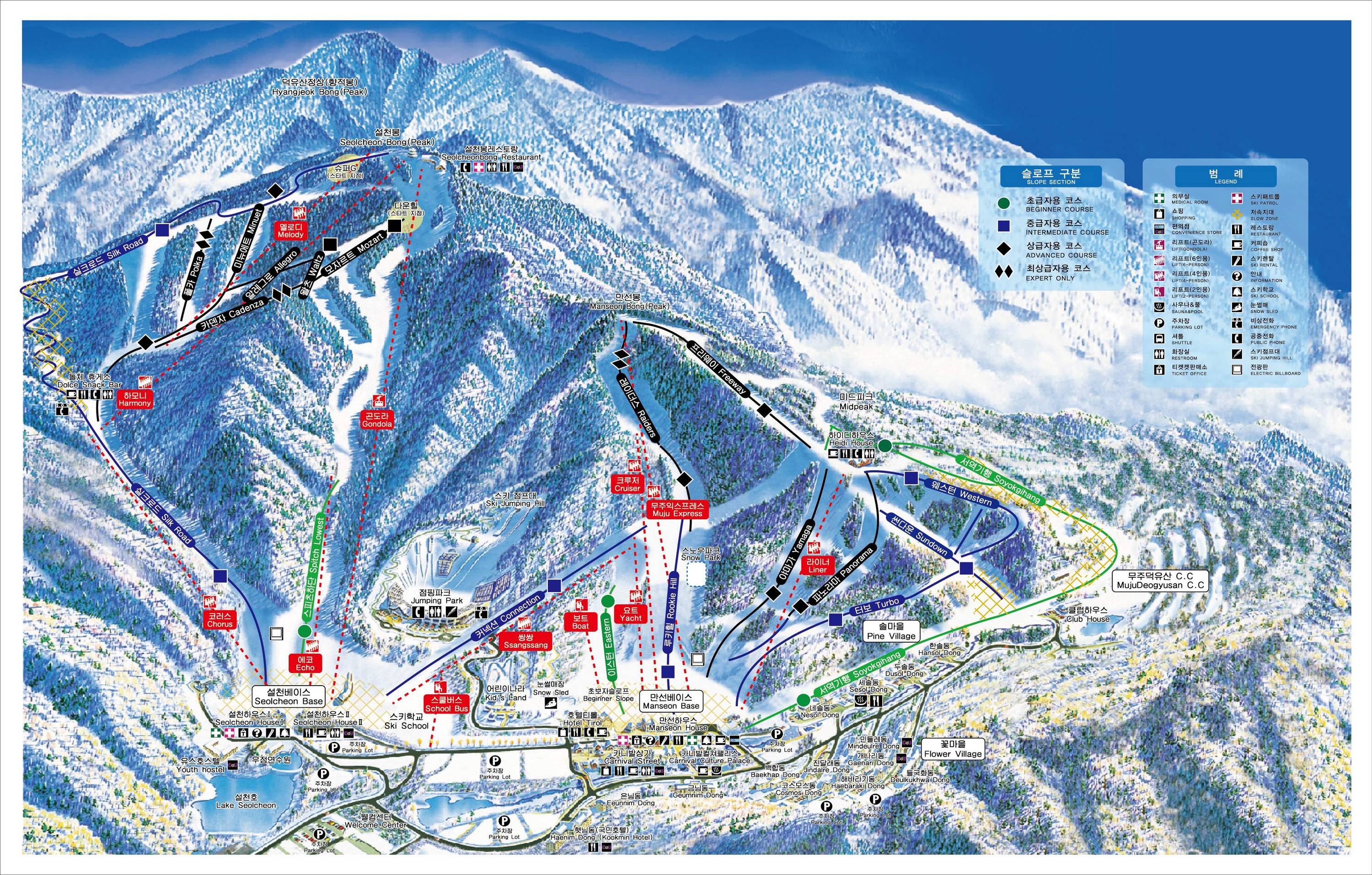 Pistekaart van het skigebied Muju Deogyusan Resort