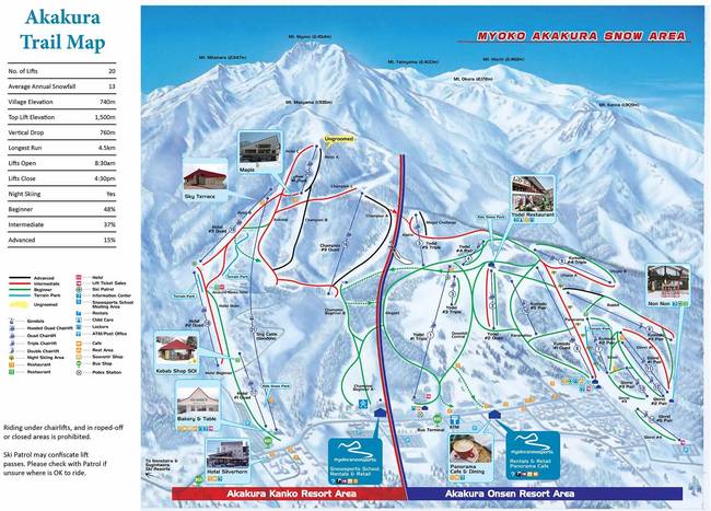 Akakura (0,4 km), Tagiri (2,7 km) Plaatsen bij het skigebied