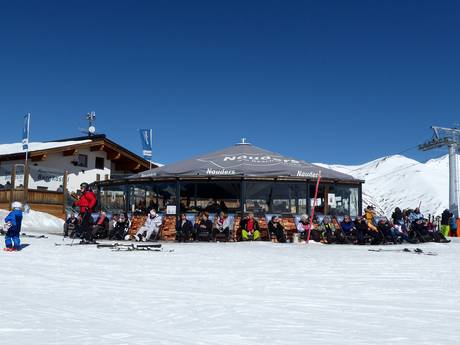 Feestvierende skiërs worden direct in het skigebied verwelkomd door twee Schirmbars. De ene ligt bij het bergstation Bergkastel en de andere direct bij het dalstation. Ook op de Stieralm, de Lärchenalm en in Jochelius heerst 's middags al een goede sfeer en kun je op de zonneterrassen de skidag gezellig afsluiten. Wie daar nog niet genoeg aan heeft, kan direct in het dorp Nauders in verschillende bars verderfeesten.