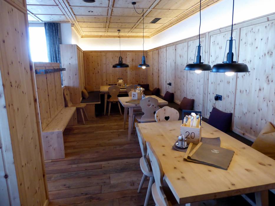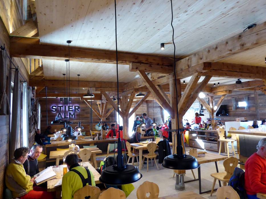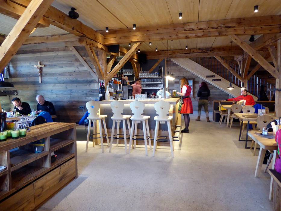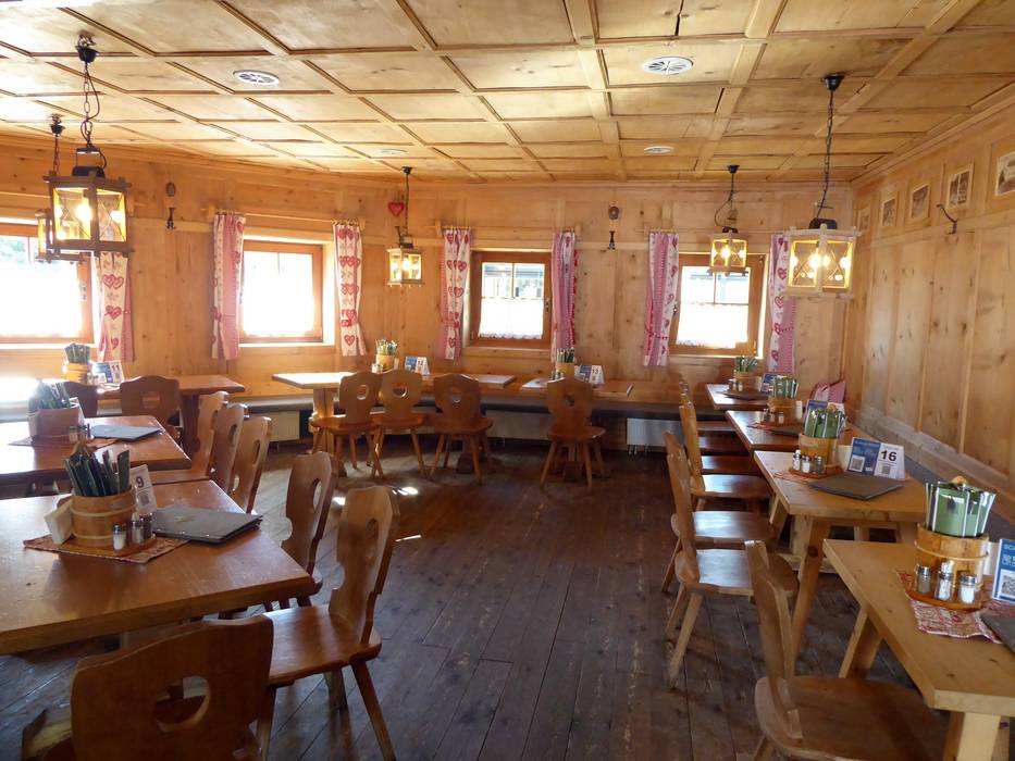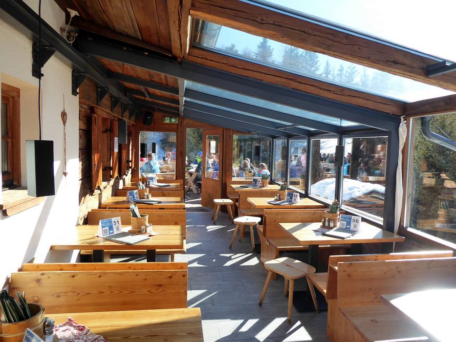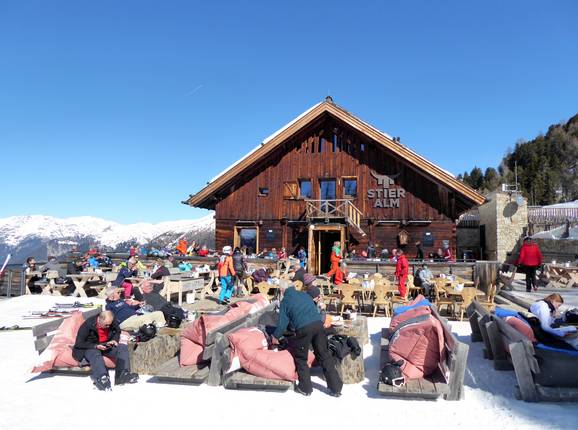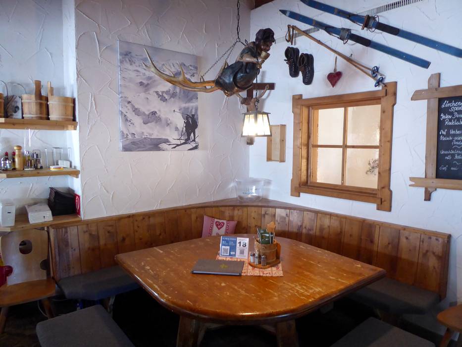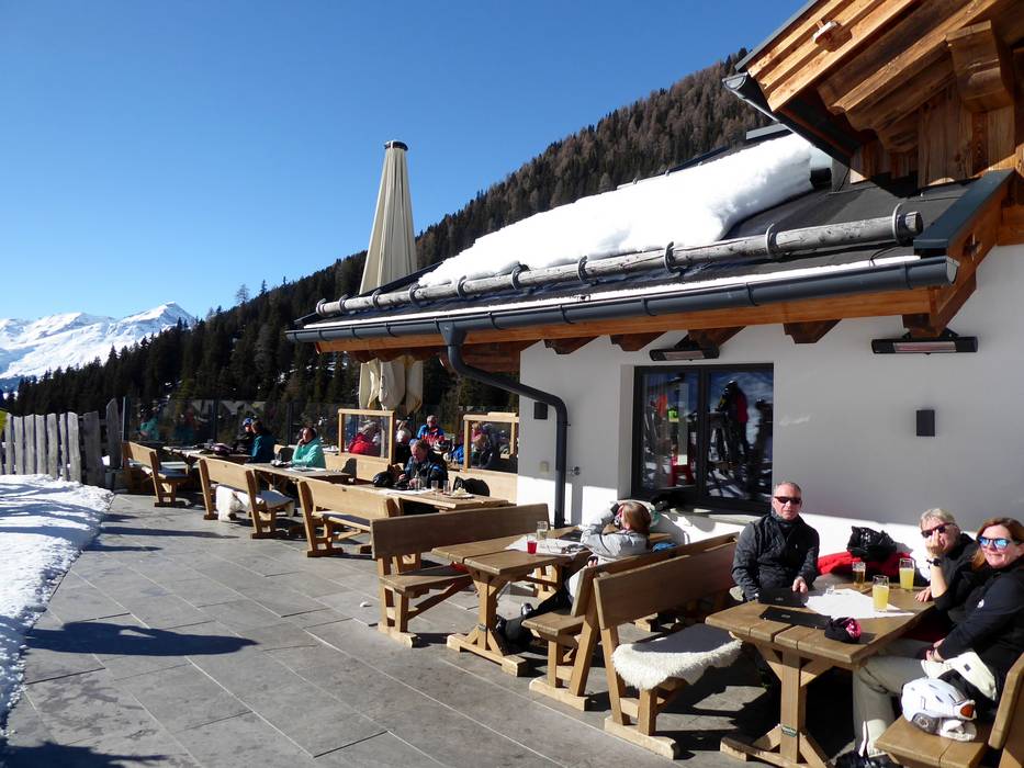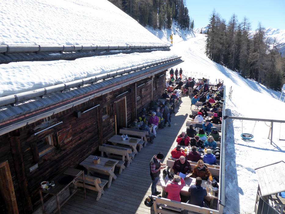 Ondanks de nieuwbouw is het rustieke en traditionele karakter van de hut behouden gebleven. Het bedieningsrestaurant beschikt over twee verdiepingen en daarnaast over een royaal zonneterras. Een gezellige plek om je terug te trekken is de knusse Zirbenstüberl. De unieke sfeer nodigt niet alleen uit tot een korte lunchpauze. Bovendien is het mogelijk om je skischoenen uit te trekken en te ontspannen met huissloffen. Hiervoor is een aparte ruimte met skischoenverwarming beschikbaar.