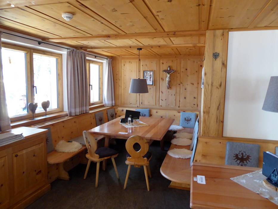 De Lärchenalm biedt een gezellige binnenruimte, een wintertuin en een idyllisch zonneterras, evenals Tiroolse lekkernijen en specialiteiten. Het is bovendien het trefpunt voor avondrodelen.