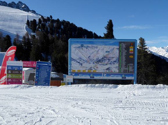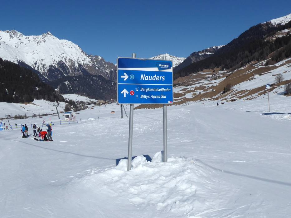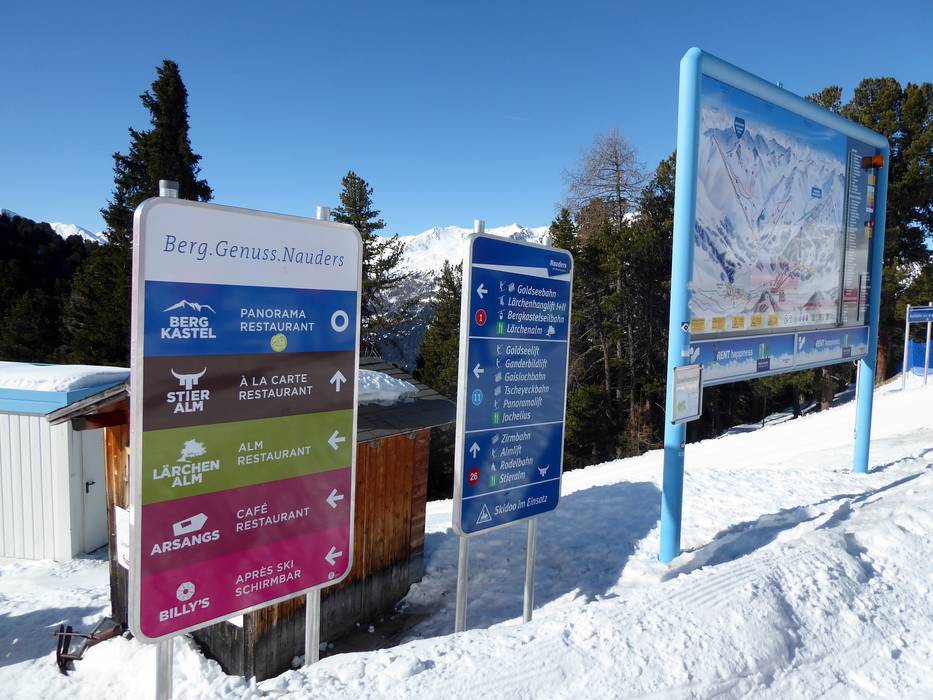 Oriëntatie (pistekaart, informatieborden, bewegwijzering piste) en veiligheid in het skigebied Nauders am Reschenpass – Bergkastel