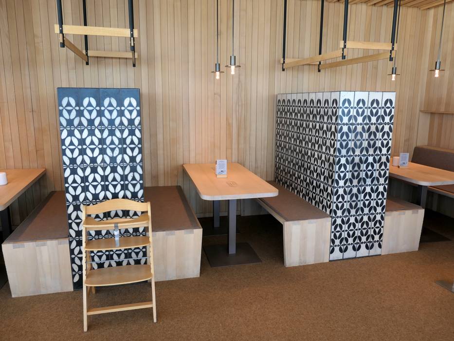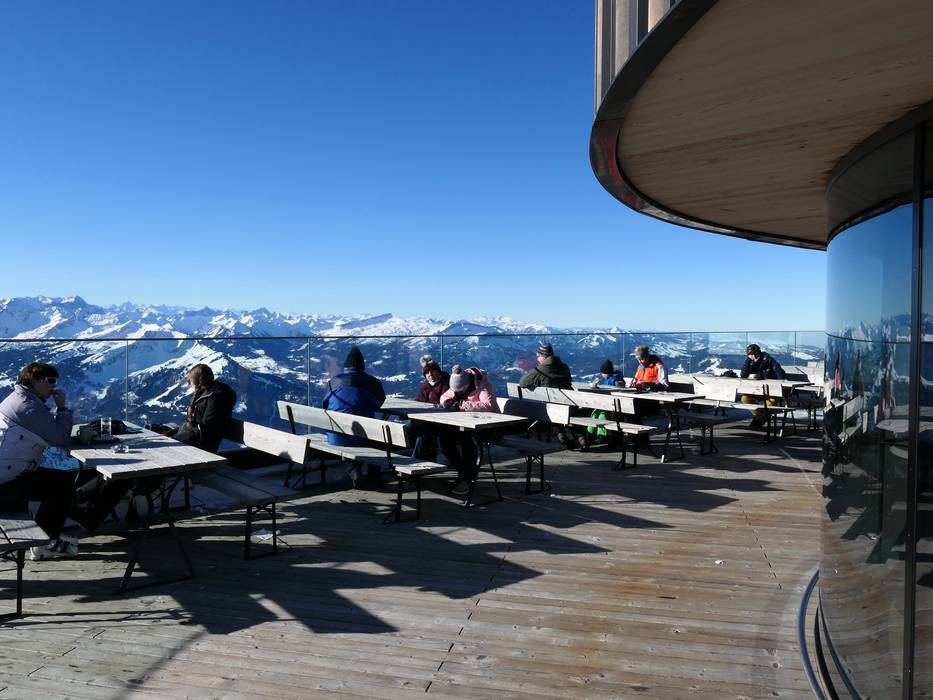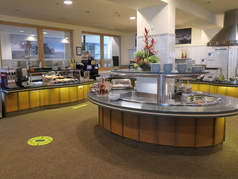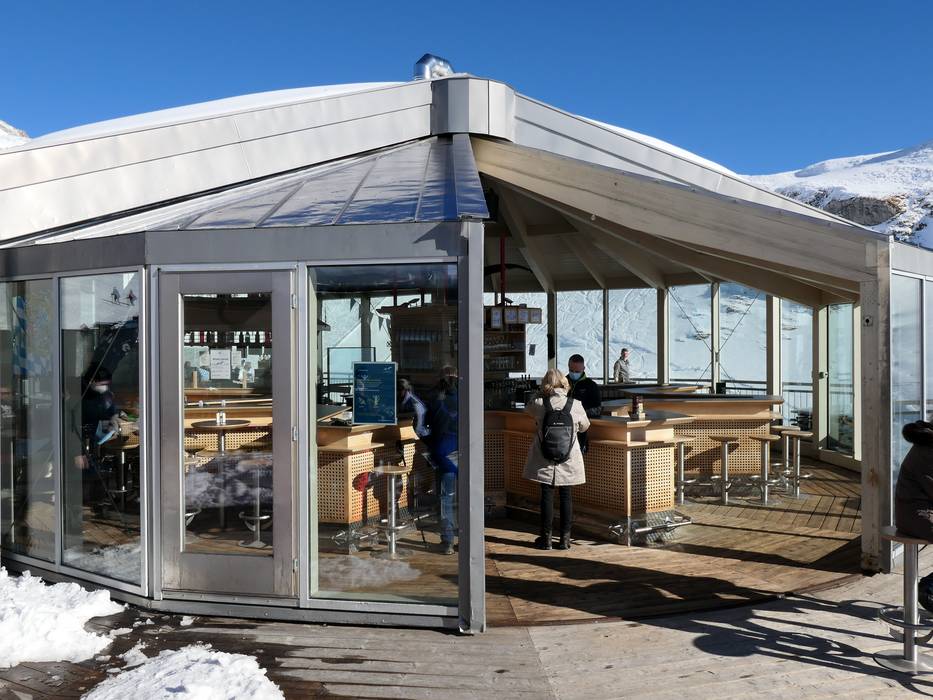 De glazen panoramabar is een populaire ontmoetingsplek. Het Gemsnet trekt bezoekers met kleine gerechten, koffiespecialiteiten en gebak.