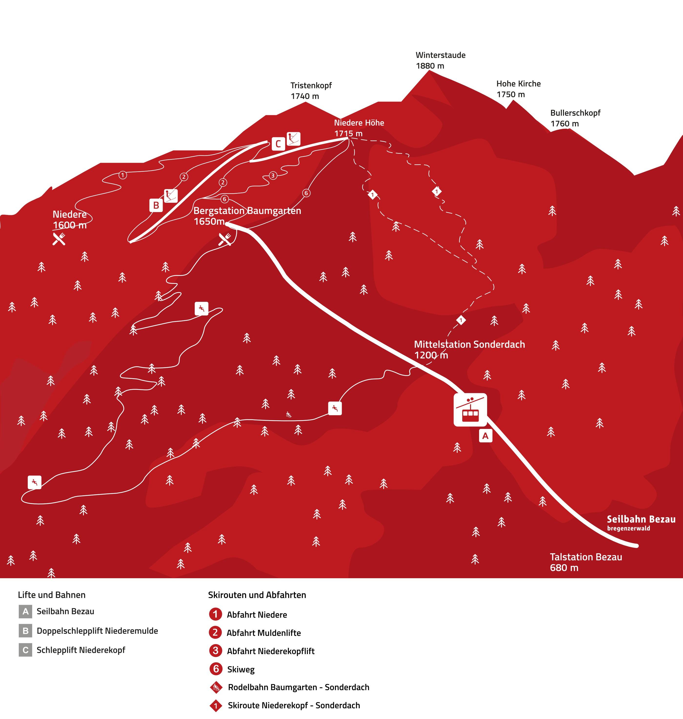 Pistekaart Skigebiet Niedere seizoen 2025/2026