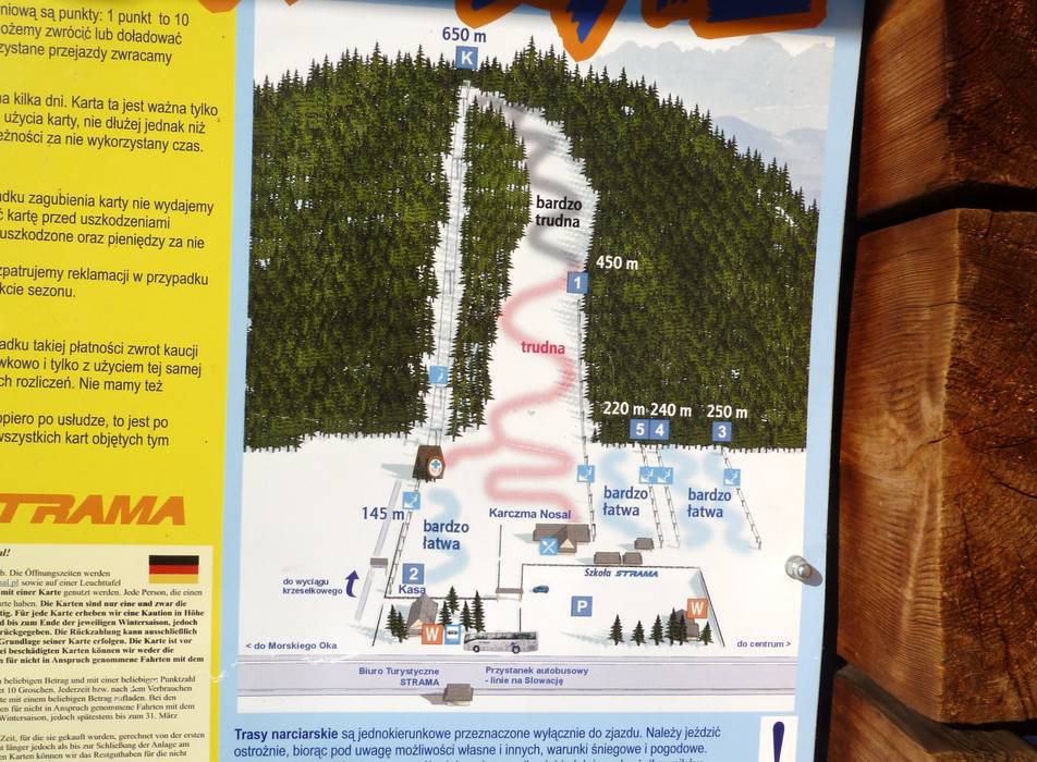 Oriëntatie (pistekaart, informatieborden, bewegwijzering piste) en veiligheid in het skigebied Nosal – Bystre