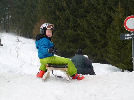 Het skigebied is zeer familievriendelijk, niet in de laatste plaats door een uiterst gezinsvriendelijk prijsbeleid. Er is kinderopvang van de skischool Hocheck met een eigen Kinderland boven het dalstation. Een oefenterrein met sleeplift en transportband bevindt zich eveneens boven het dalstation. De eerste door TÜV gekeurde, 3 km lange en verlichte winterrodelbaan is ook erg populair bij gezinnen.