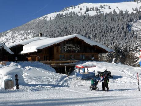 De Meckatzer Sportalp is een gezellige hut in moderne alpine stijl. De keuken verwent je met biologische producten en vegetarische lekkernijen, van bijzonder tot traditioneel. In de Meckatzer Sportalp is er een bediend gedeelte en een zelfbedieningsgedeelte.