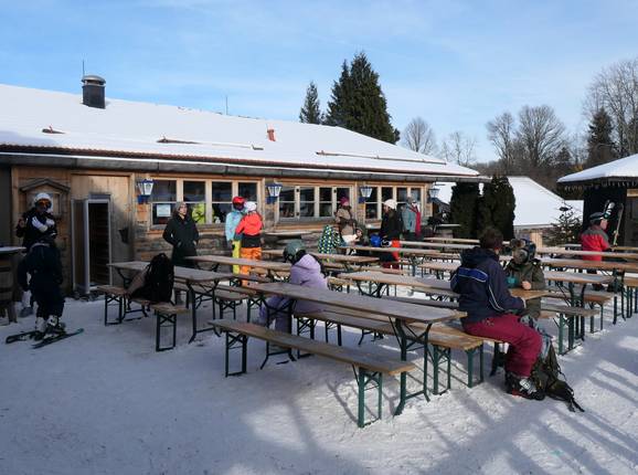 De gezellige Oedbergalm biedt de hele dag door warme maaltijden en serveert in zelfbediening traditionele Beierse specialiteiten. Vanaf het zonneterras kun je het gebeuren op de piste uitstekend bekijken.