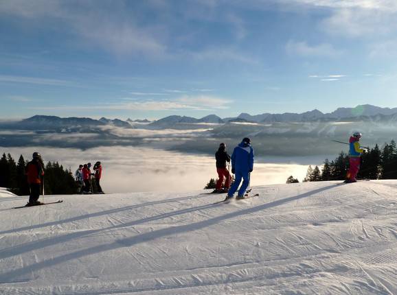 Het skigebied Ofterschwang/Gunzesried beschikt over moderne gondelbanen en stoeltjesliften die gasten vanuit de idyllische dorpjes direct naar het wintersportgebied bij de Ofterschwanger Horn brengen. Terwijl gevorderden zich kunnen uitleven op de World Cup-afdaling naar Ofterschwang, vinden
