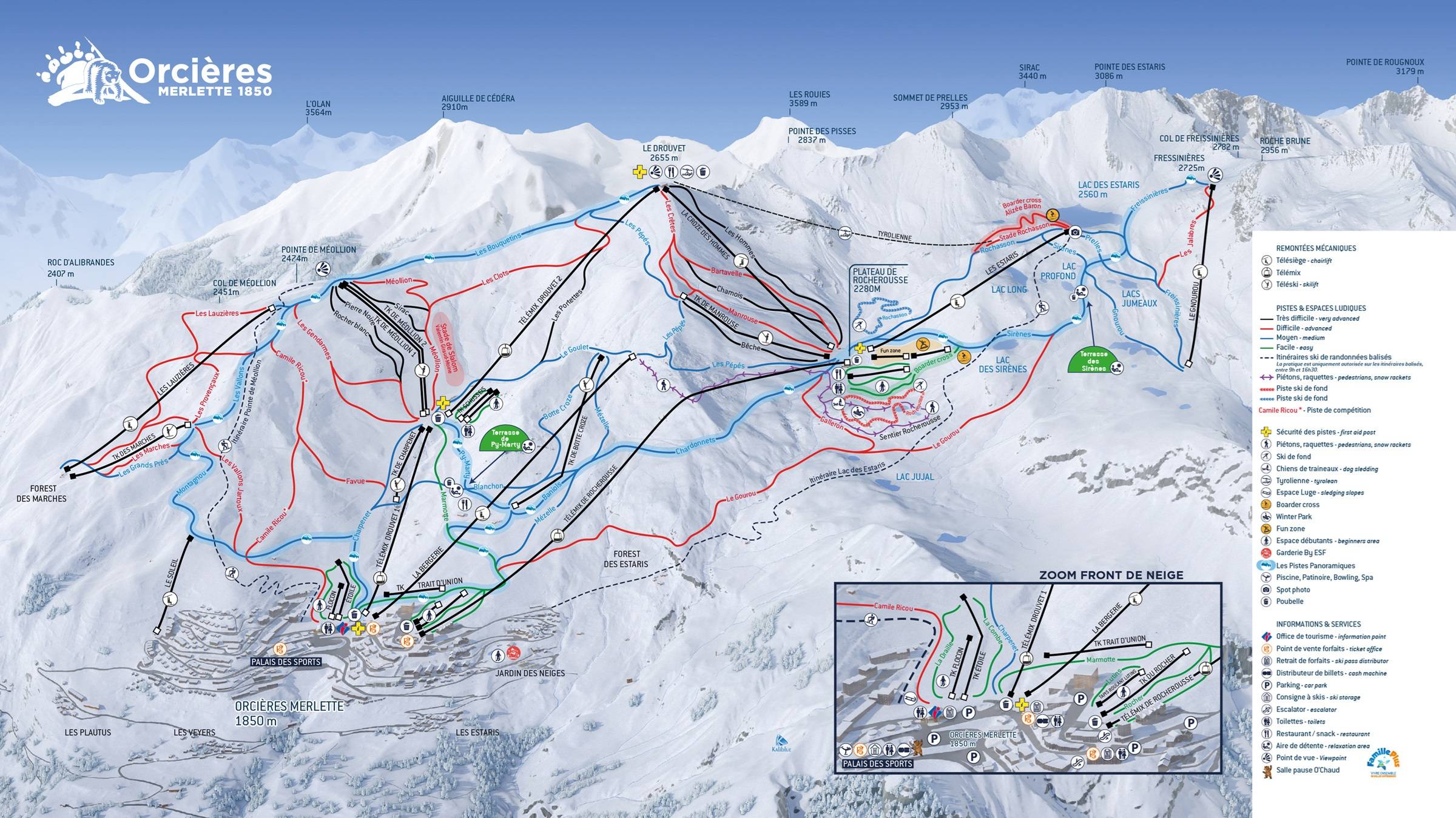 Pistekaart Orcières Merlette 1850 seizoen 2024/2025