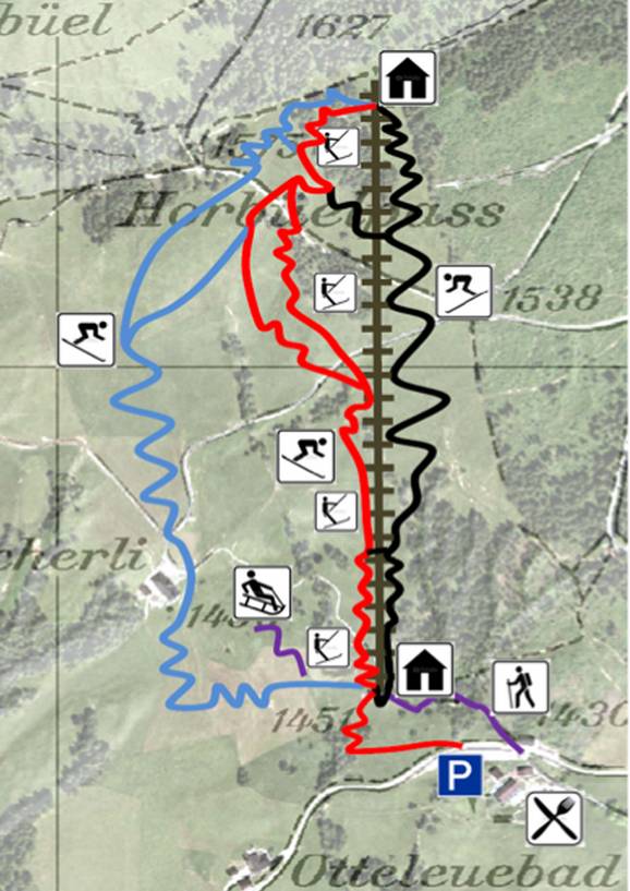 Ottenleuebad (0,3 km), Sangernboden (7 km), Guggisberg (11 km) Plaatsen bij het skigebied