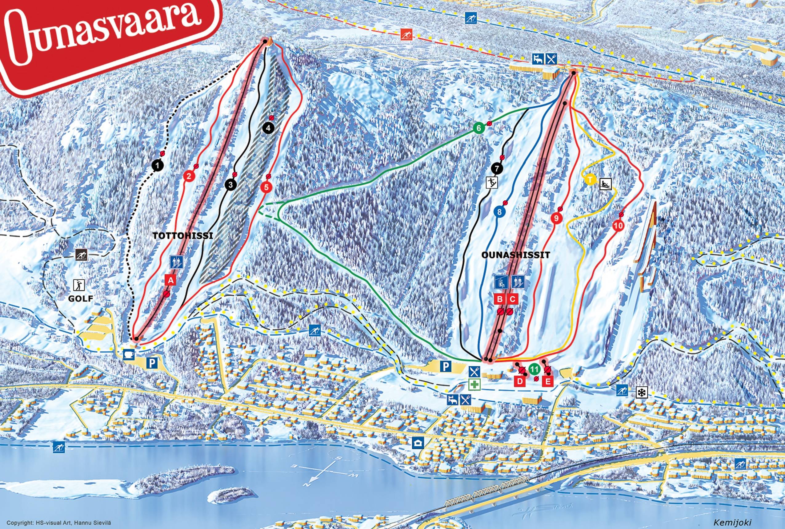 In het skigebied Ounasvaara zijn veel pistekaarten te vinden. De pistes zijn meestal goed aangegeven. Actuele daginformatie zou nog aangevuld kunnen worden.