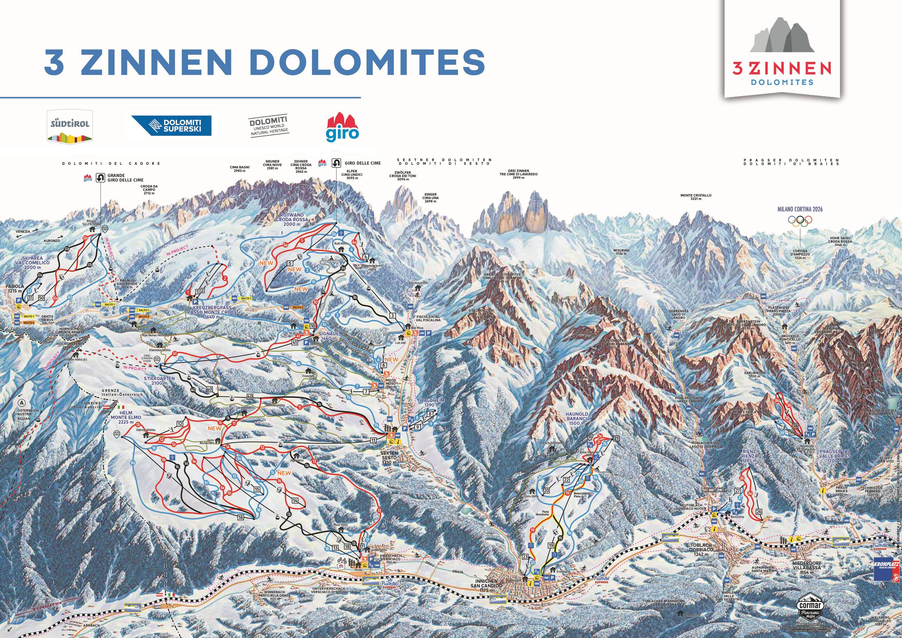 Pistekaart 3 Zinnen Dolomites seizoen 2024/2025
