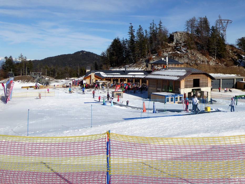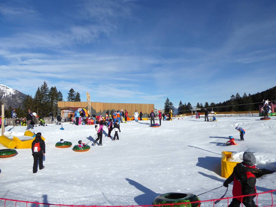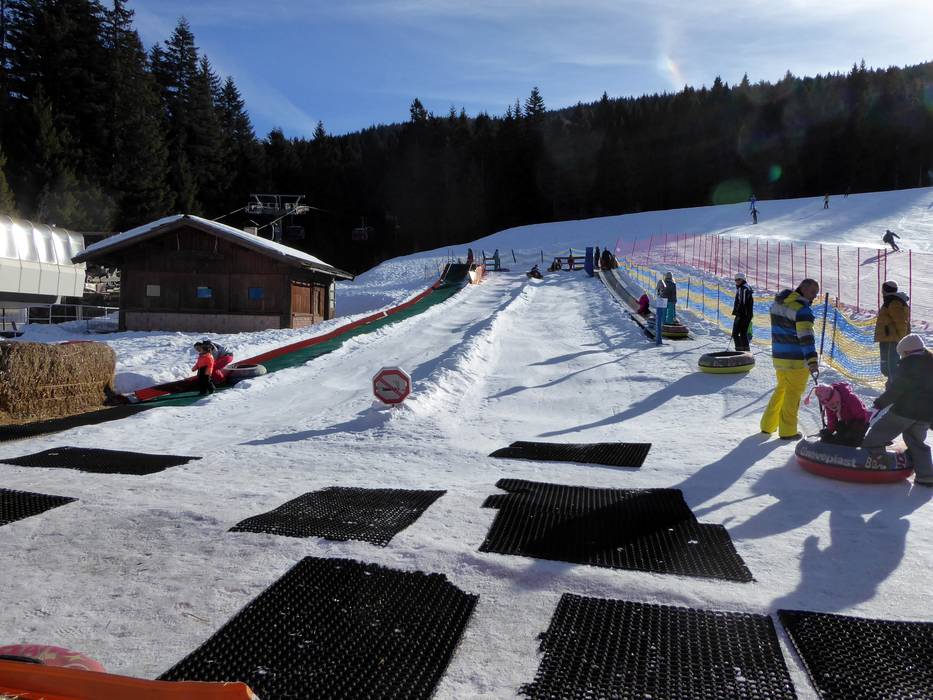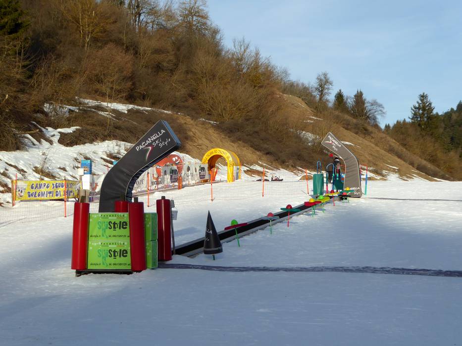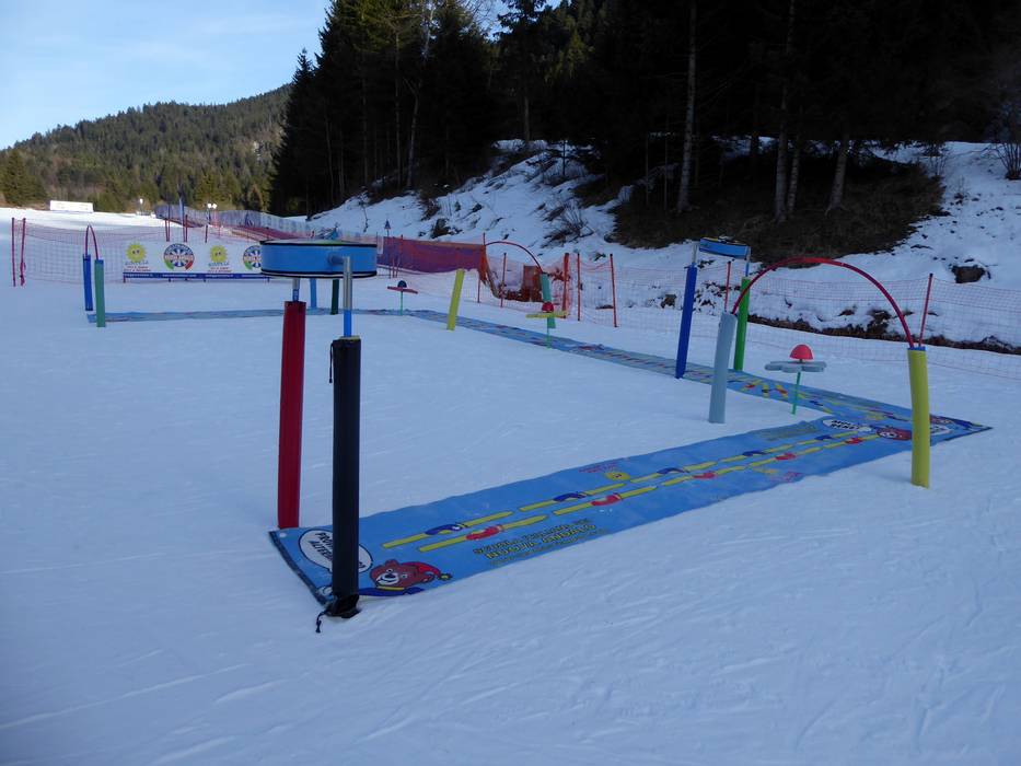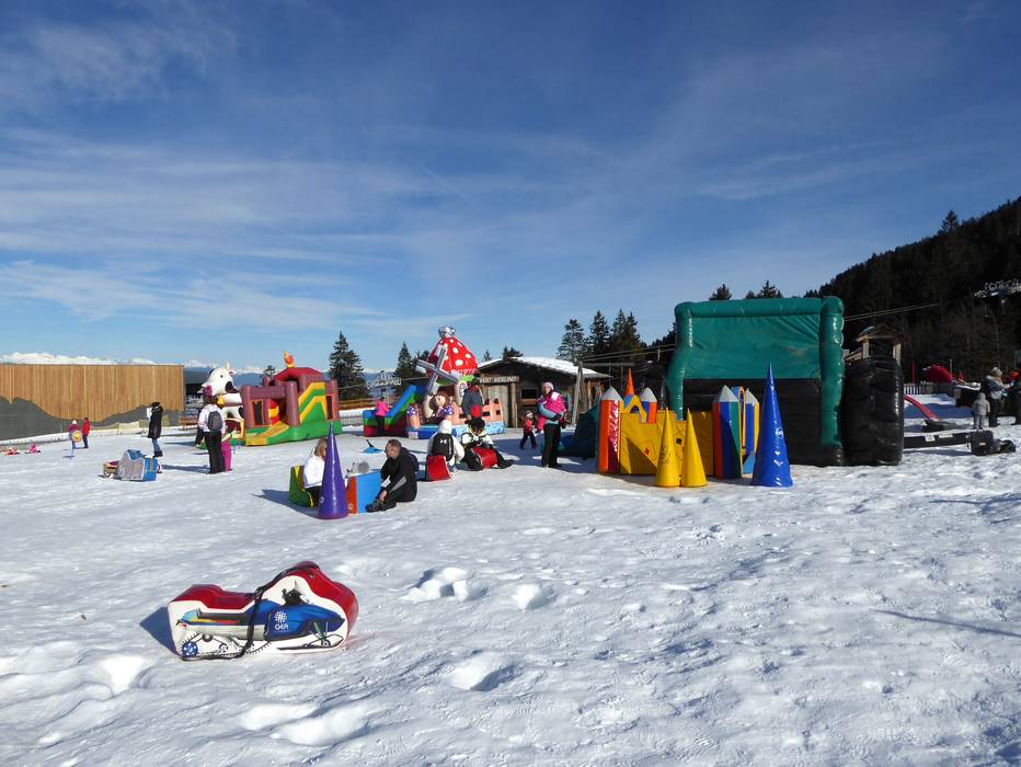 Het Snow Kids-leergebied bevindt zich bij het dalstation Laghet in Andalo. Hier is een transportband en zijn er hindernissen. Een ideale plek voor de eerste bochten in de sneeuw.