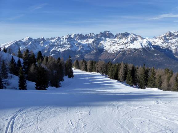 De brede en uitstekend geprepareerde pistes van het skigebied Paganella behoren tot de internationale topklasse. Het merendeel van de pistes is van gemiddelde moeilijkheidsgraad en loopt over open skigebied in het bovenste gedeelte. Verder naar beneden voeren de pistes door bosrijke corridors naar het dal. Er is één moeilijke piste en enkele gemakkelijke pistes voor beginners. Bij de meeste afdalingen geniet je van het prachtige panorama van de Dolomieten. Vanaf de top kun je zelfs het Gardameer zien.
