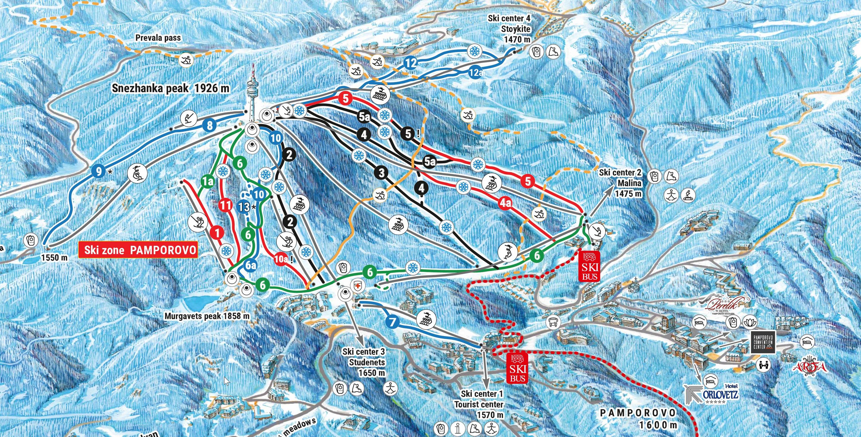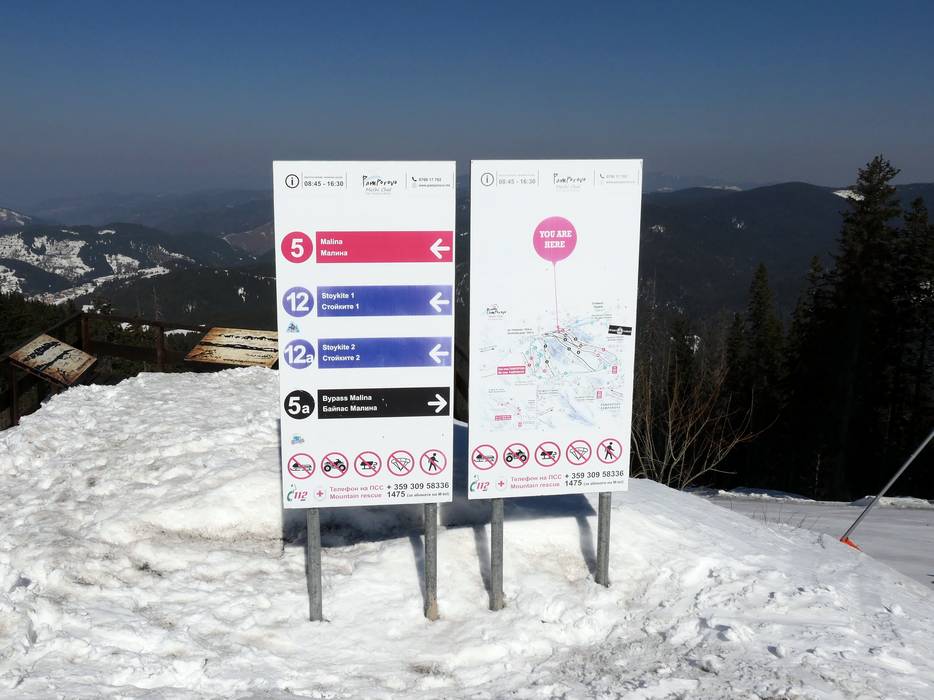 Oriëntatie (pistekaart, informatieborden, bewegwijzering piste) en veiligheid in het skigebied Pamporovo