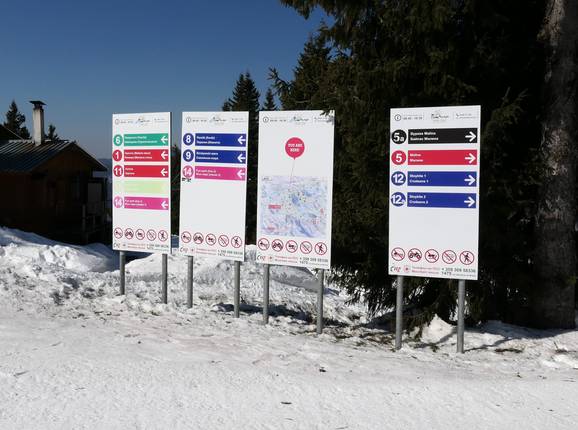 In het skigebied zijn er veel bewegwijzeringen en piste-markeringen. Informatieborden staan op belangrijke punten klaar.