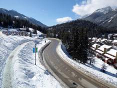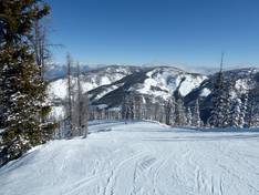 Middenstation Mile 1 Express en Champagne… Op de Panorama Mountain op 2365 m Uitzicht vanaf het dorp op het skigebied… Uitzicht op het Panorama Mountain Village