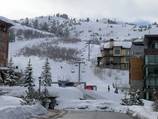 Eerst bereikt men het Park City Canyons Village. Vanaf de grote, gratis parkeerplaats zweef je comfortabel met een cabrioletbaan voor 8 personen naar het hotelcomplex Canyons Village, waar het skigebied begint.