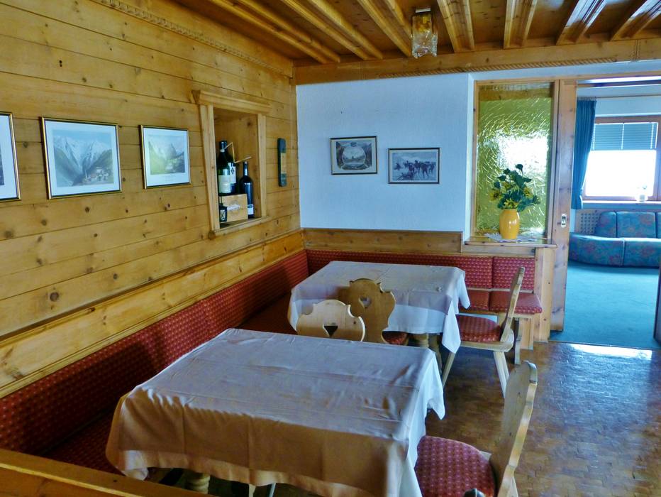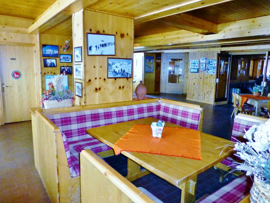 Vanaf het restaurant heb je een goed uitzicht op de omliggende gletsjerwereld en de markante Geisterspitze. Er worden regionale en Italiaanse gerechten geserveerd.