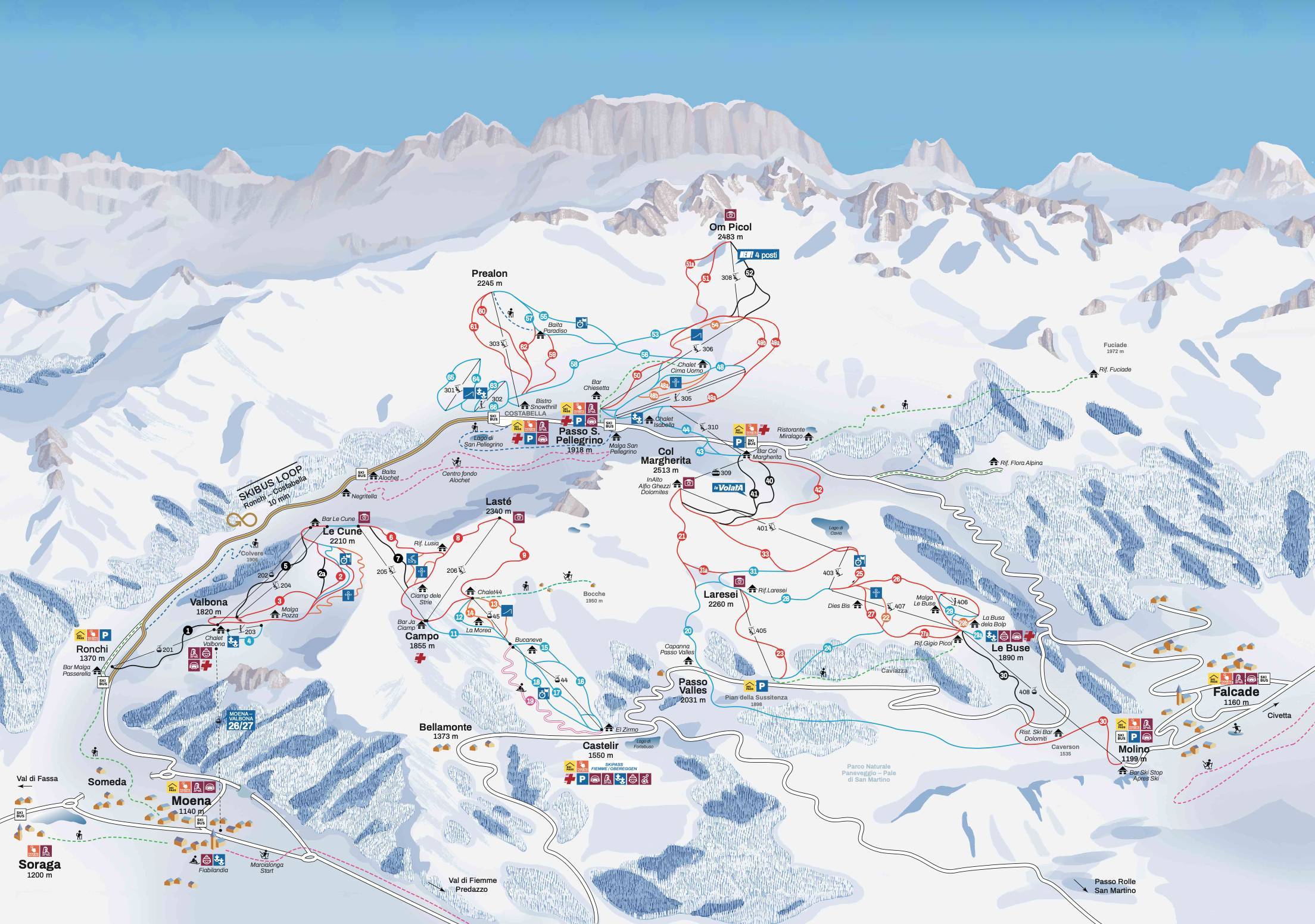 Pistekaart Alpe Lusia / San Pellegrino seizoen 2025/2026