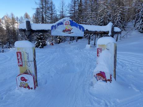 Bij de skilift Capanna Margherita kunnen kinderen oefenen op de transportband. Hier is ook een konijnenpiste en een skicrossbaan met bochten en sprongen.