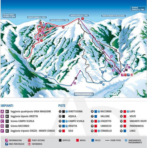 Pistekaart Pescasseroli seizoen 2025/2026