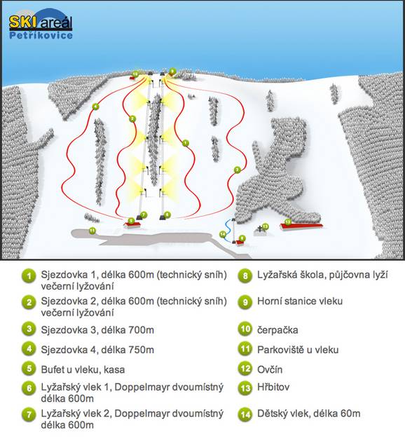 Pistekaart Ski Areál Petříkovice seizoen 2024/2025