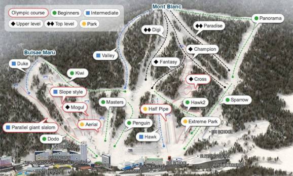 Bongpyeong-myeon (8 km), Pyeongchang (39 km) Plaatsen bij het skigebied