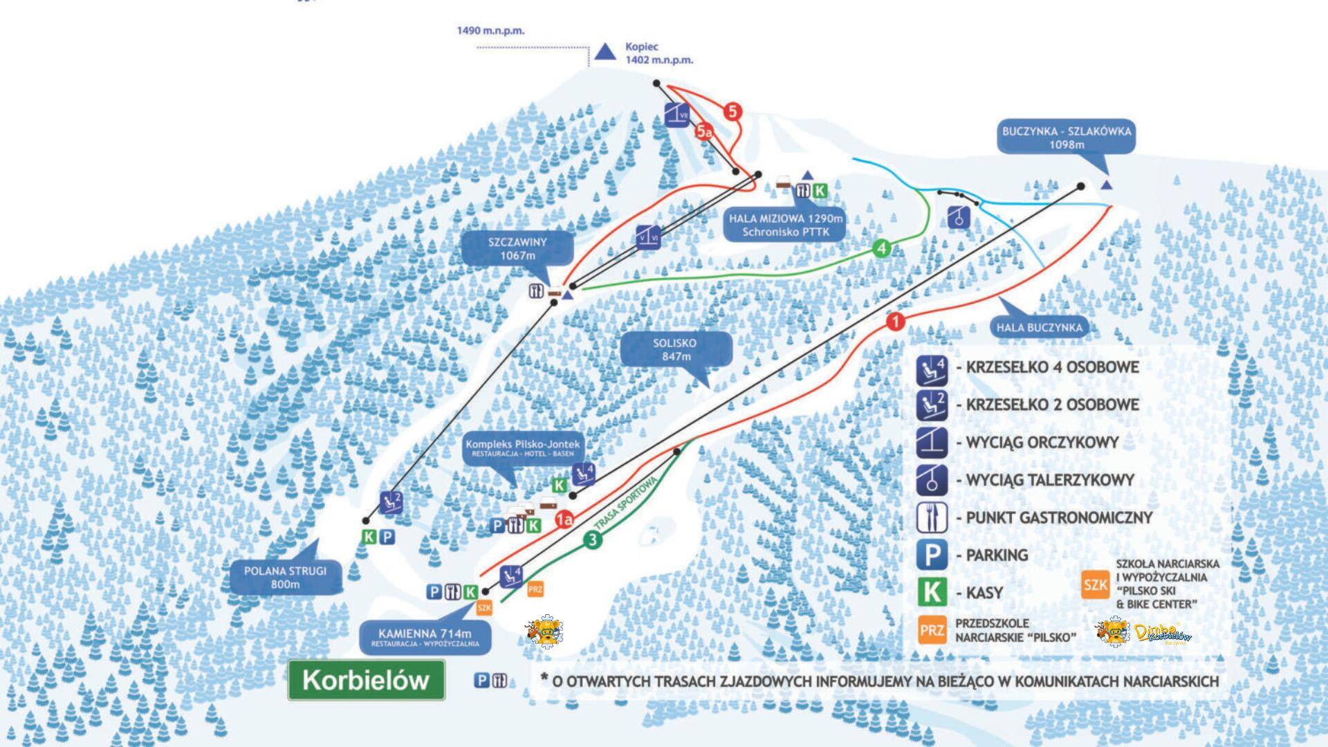 Pistekaart Pilsko – Korbielów seizoen 2025/2026