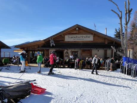 De Trametschhütte biedt huisgemaakte, typische Zuid-Tiroolse gerechten. Naast een gezellige stube is er een mooi zonneterras.