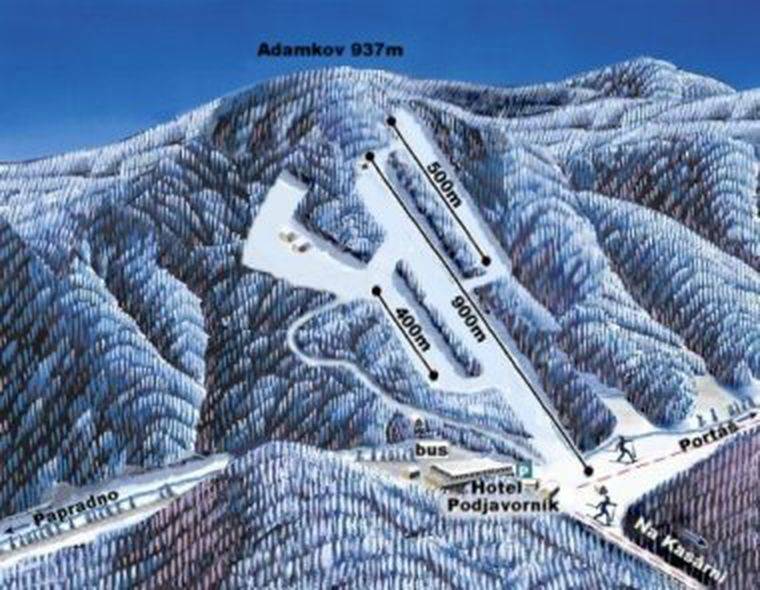 Podjavorník (0,1 km), Papradno (10 km) Plaatsen bij het skigebied