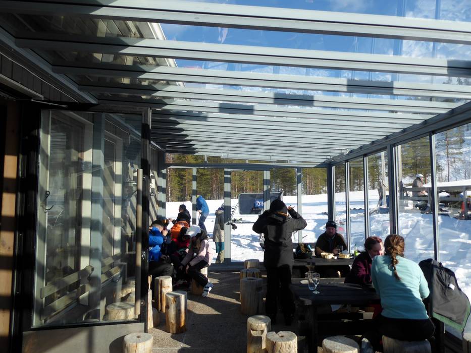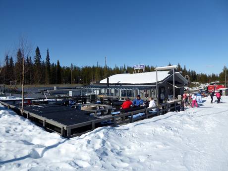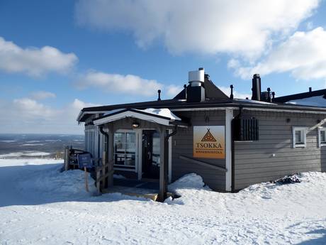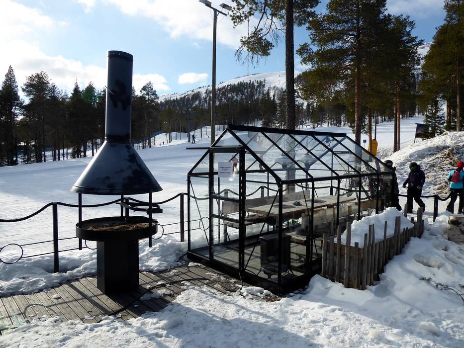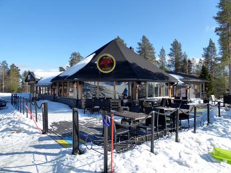 Het skigebied Pyhä biedt een zeer goede keuze aan horecagelegenheden. Zelfs helemaal boven op de top kun je in een gezellige berghut pauzeren. In het skigebied zijn ook open vuurplaatsen te vinden waar je je eigen worstjes kunt grillen. Verwarmde hutten maken het aanbod compleet.