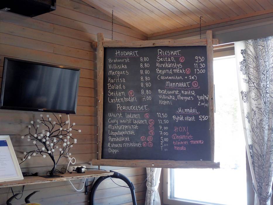 In het restaurant PyhäWurst is er een grote keuze aan verschillende worsten. Op koude dagen zorgt de open haard voor warmte en bij zonnig weer nodigt het terras uit.