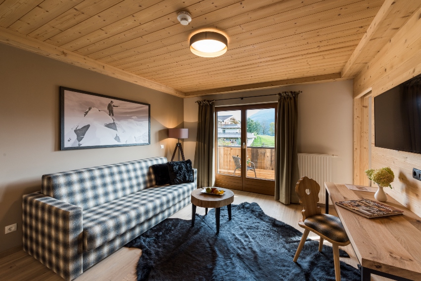 Himmelbed, familieappartement of een ruime ambiance-kamer – u hoeft alleen nog maar te kiezen. Het uitzicht op de bergen is vanuit elk even onbeschrijfelijk. Hier voelt u zich niet alleen thuis.