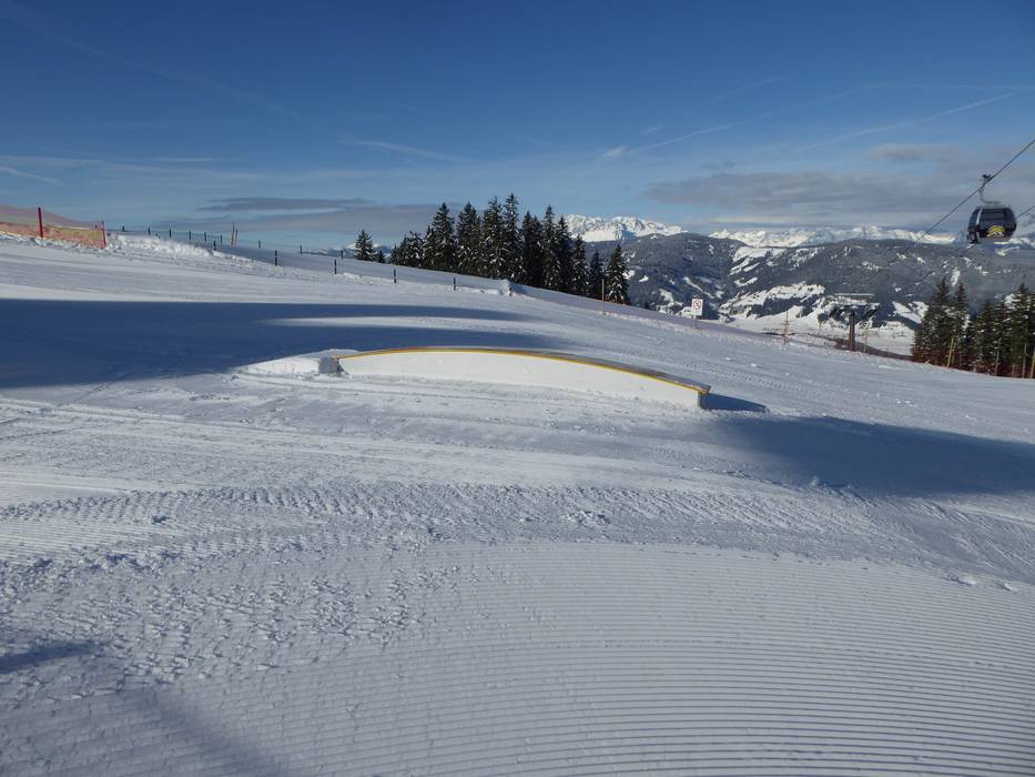Het kleine snowpark bij de Kemahdhöhe biedt kickers en boxen die speciaal ideaal zijn voor freestyle-beginners.