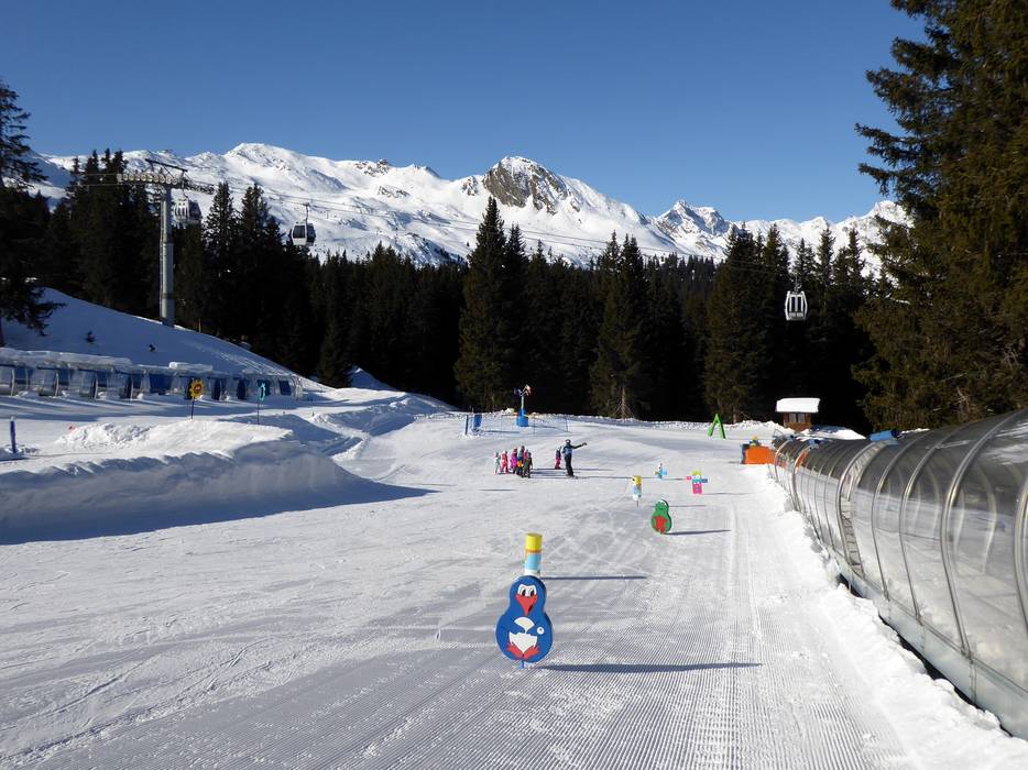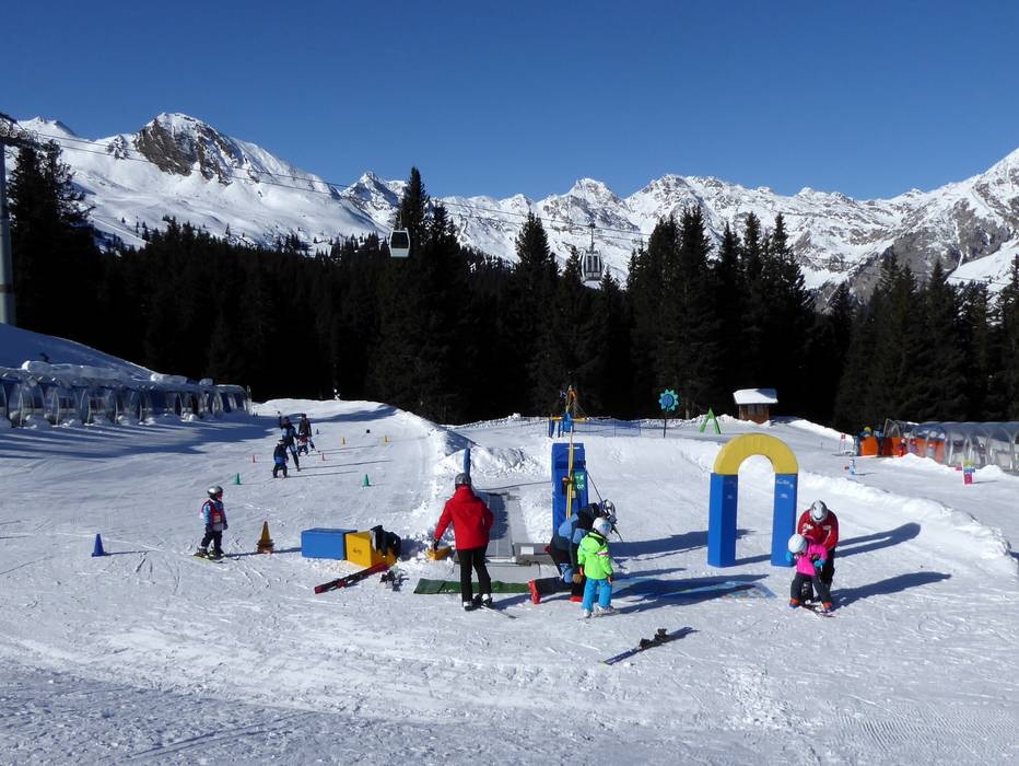 Het Kinderland met tovertapijt ligt direct bij het dalstation en wordt begeleid door Luisl's Skischool.