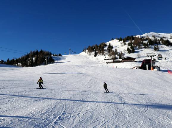Er is een rode en een zwarte dalafdaling. De zwarte leidt naar het dalstation van de Hochalmbahn, de rode naar de Kreuzbodenbahn.