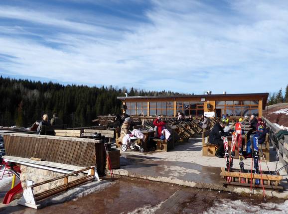 De skidag kan worden afgesloten op het zonneterras van Restaurant Gondola bij het dalstation.