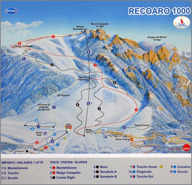 Kaart met route lift: Recoaro Terme-Recoaro 1000