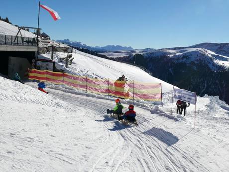 Het Kinderland van de skischool Sarntal ligt midden in het skigebied bij de Pfnatschalm. Met de gondelbaan en een spannende rit op de sneeuwscooter komen de kinderen bij het oefenterrein. Met een tovertapijt en stripfiguren is de ski-kleuterschool ideaal om de eerste ervaringen op ski’s op te doen.