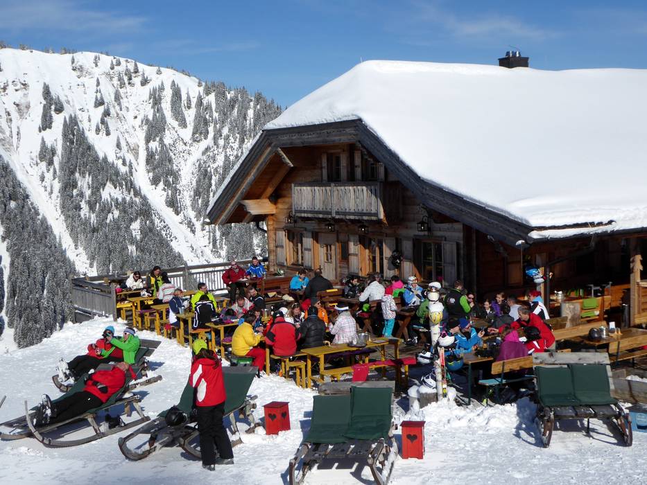 Het zonneterras met ligstoelen biedt een prachtig panoramisch uitzicht over het Mörsbachtal. De gezellige berghut garandeert een geslaagde pauze met huisgemaakte hut-specialiteiten en après-ski huttengezelligheid.
