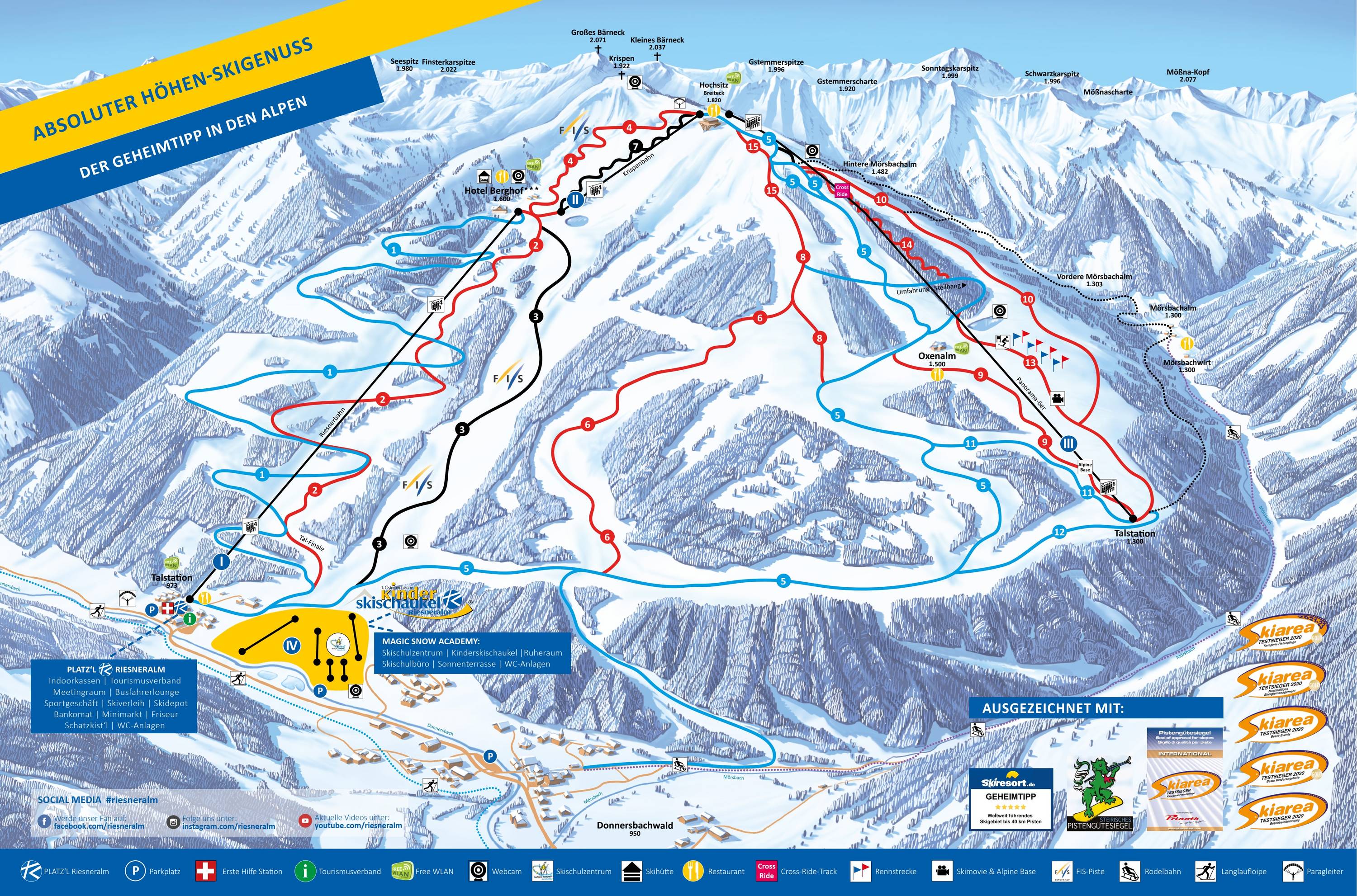 Oriëntatie (pistekaart, informatieborden, bewegwijzering piste) en veiligheid in het skigebied Riesneralm – Donnersbachwald